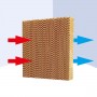When the outdoor dry hot air is sucked through the paper pad by the fan, the water on the water film absorbs the heat in the air and vaporizes in the vapor, so that the cool and humid